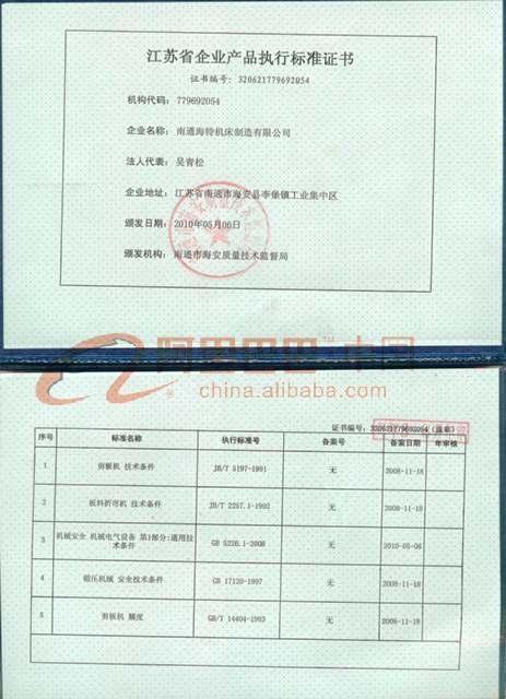 産品執行标準證書