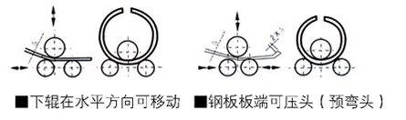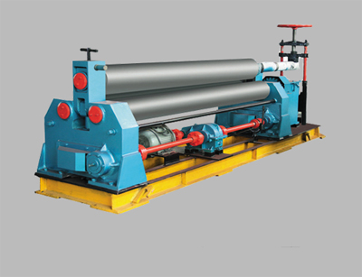 本機結構型式爲三輥對稱式,上輥在兩下輥中央對👀稱位置作垂直升降運動,通過絲杆絲母蝸杆傳動而😗獲得🎅🏿,兩下輥作旋轉運動,通過減速機的輸出齒輪與下輥齒合,爲卷制闆材提供扭👹矩。本機床結構緊湊,操作維修方便。